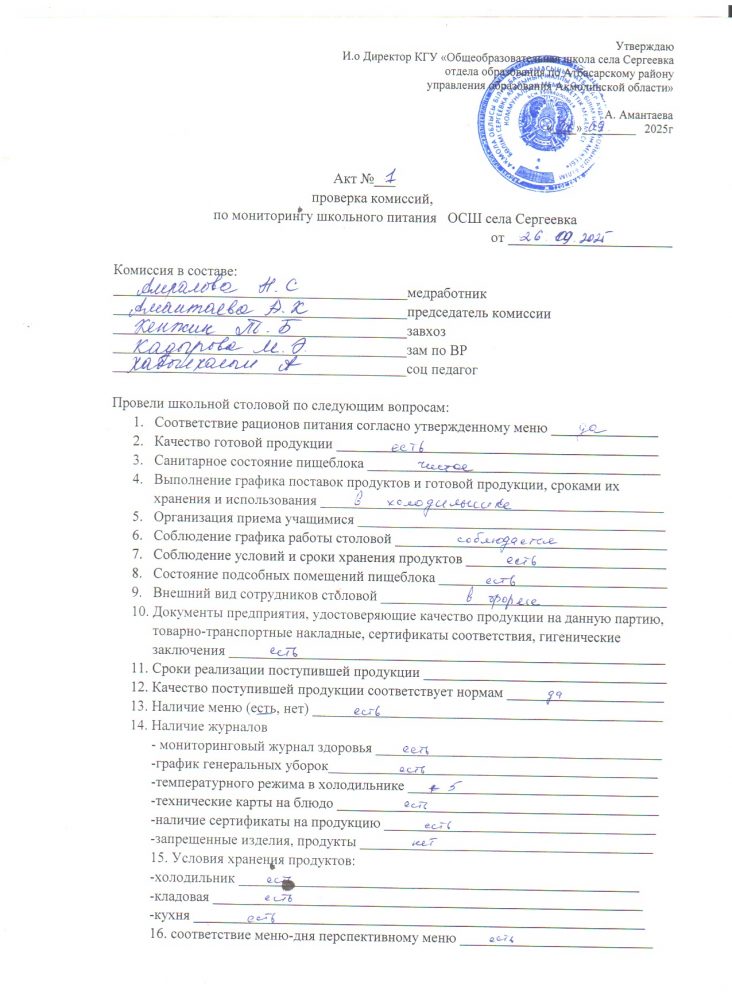 Коммунальное государственное учреждение "Общеобразовательная школа села Сергеевка отдела образования по Атбасарскому району управления  образования Акмолинской области"