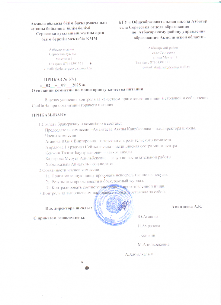 Коммунальное государственное учреждение "Общеобразовательная школа села Сергеевка отдела образования по Атбасарскому району управления  образования Акмолинской области"